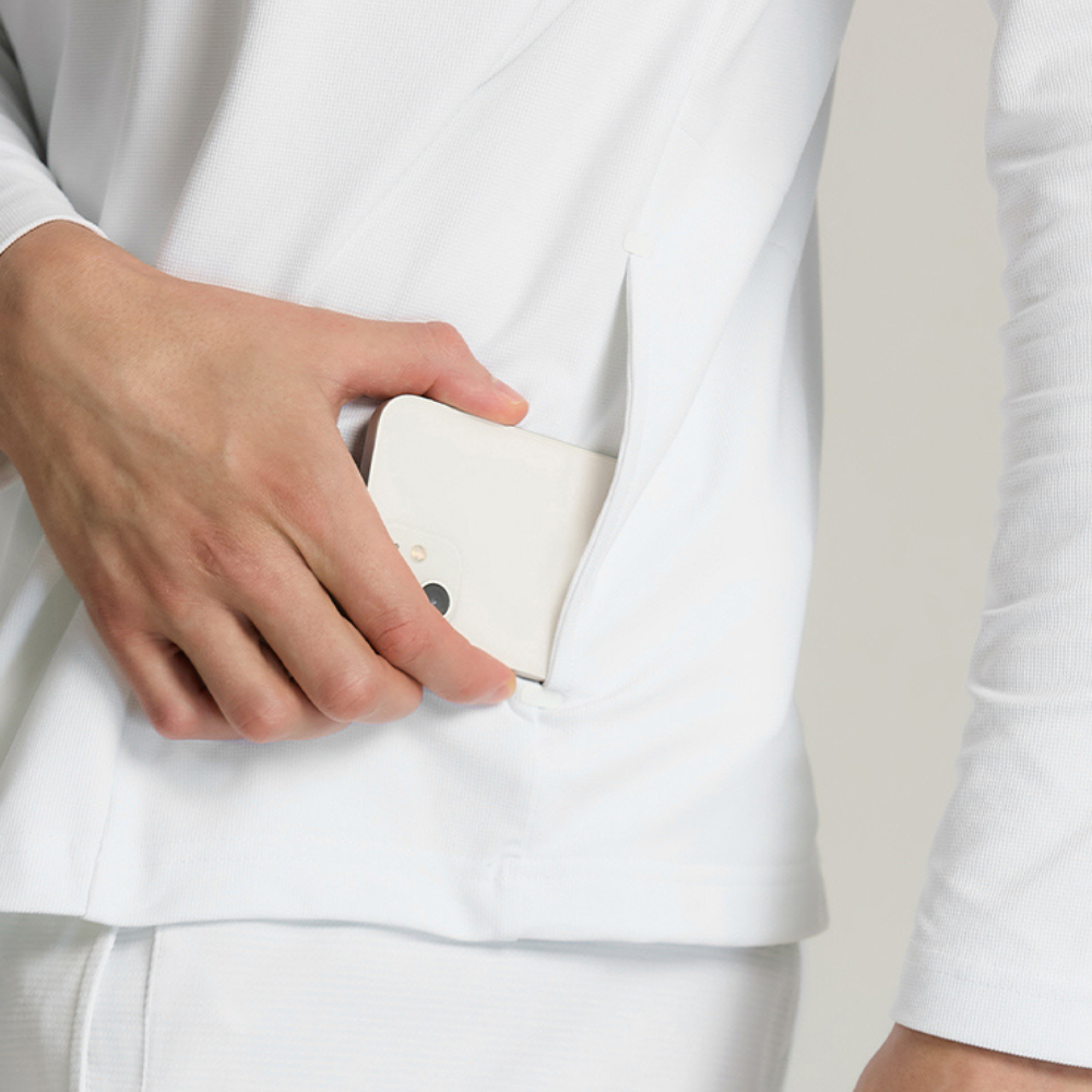 Chất liệu: Vải kỹ thuật co giãn nhẹ, thoáng khí và mềm mại, hỗ trợ vận động linh hoạt trong cả ngày dài.