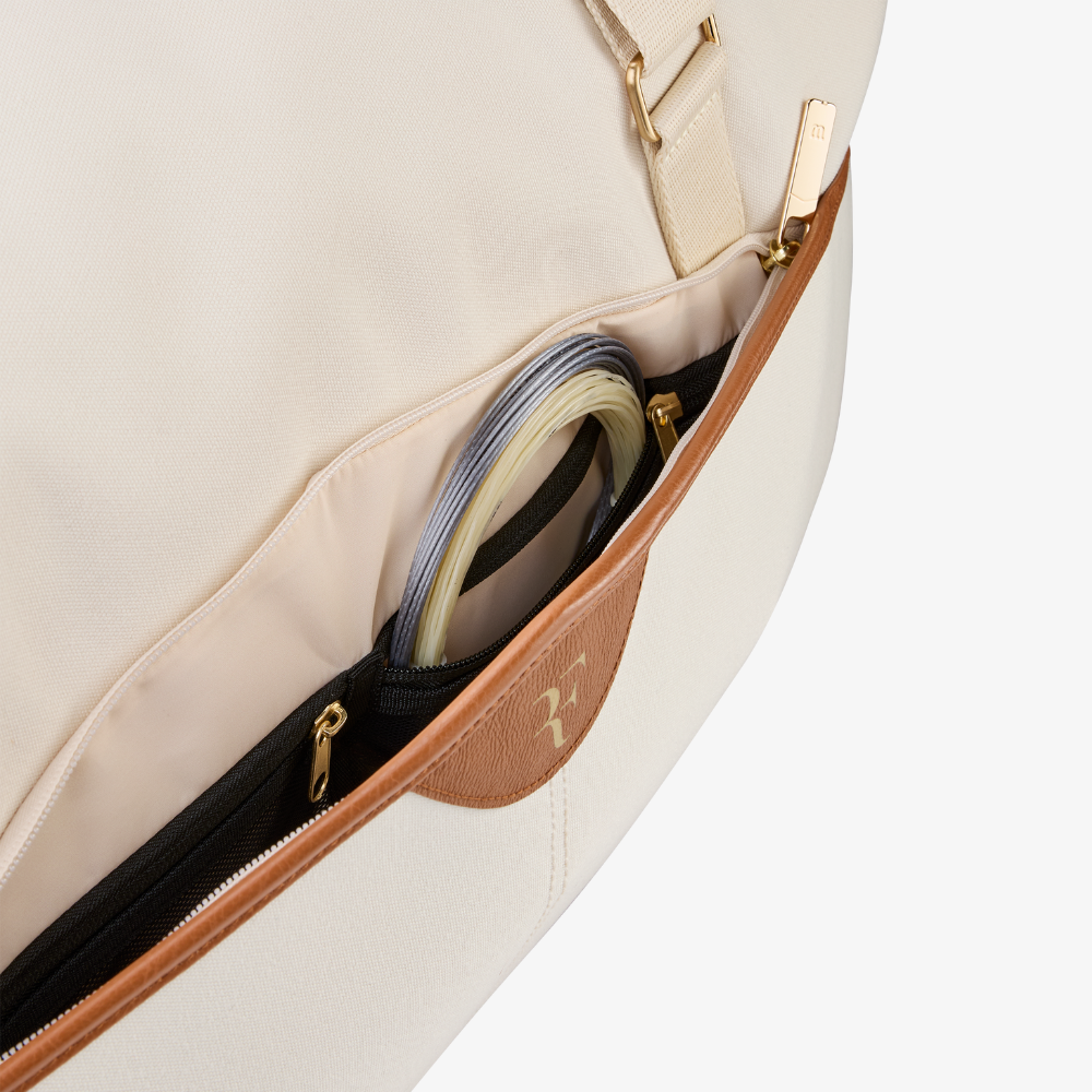 Dòng túi này được Roger Federer phát triển từ đầu và được đóng gói với sự chú ý đến từng chi tiết. Đây là thiết kế phiên bản giới hạn cho bộ sưu tập LAWN 2025. Đế bằng da PU tăng thêm nét sang trọng và độ bền. Ngăn chính có thể chứa tới sáu cây vợt. Ngăn chứa đồ không chỉ hoàn hảo để đựng quần áo mà còn có bốn túi có khóa kéo ở cả hai bên để đựng các vật dụng nhỏ. Túi cũng có ngăn đựng phù hợp để đựng chai nước và hộp đựng bóng. Túi có một ngăn đựng giày, đủ lớn để đựng một đôi giày. Các túi phía trước ở cả hai bên cũng có túi có khóa kéo để đựng các vật dụng nhỏ. Được phát triển theo quan điểm của chính Roger Federer, chiếc túi duffel này được thiết kế riêng để đáp ứng nhu cầu của người chơi quần vợt.