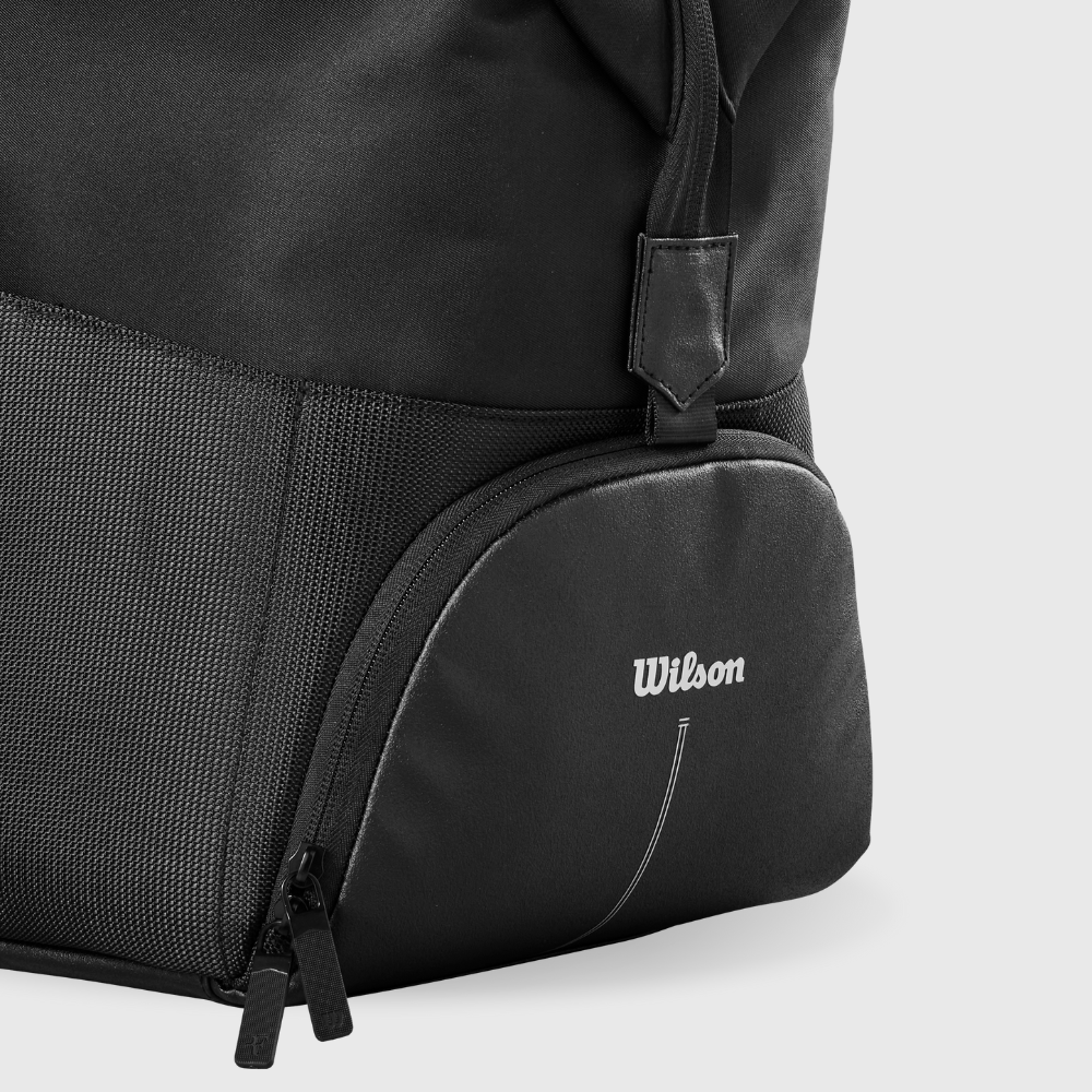 - Balo Wilson RF mang đến sự thoải mái cho những ngày luyện tập và du lịch. Thiết kế lấy cảm hứng từ dãy núi Alps hùng vĩ của Thụy Sĩ, một chủ đề vang vọng trong bộ sưu tập Roger Federer.