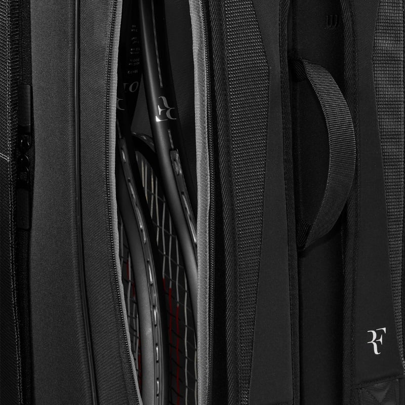 Túi đựng vợt Wilson RF Tournament được thiết kế dành cho dân chuyên nghiệp, lấy cảm hứng từ dãy núi Alps hùng vĩ của Thụy Sĩ, một chủ đề thường thấy trong bộ sưu tập của Roger Federer .